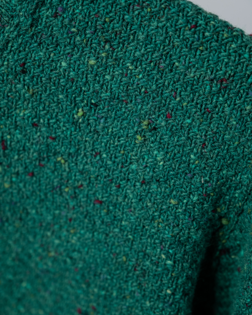 - Large rustic flecks woven into a soft, high-performance yarn